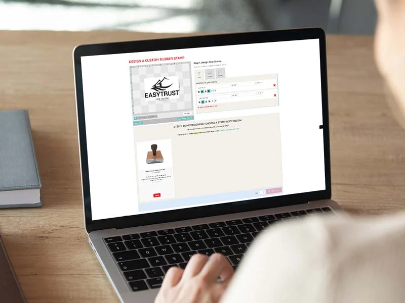 Create a custom rubber stamp from your own design file or use our stamp designer.