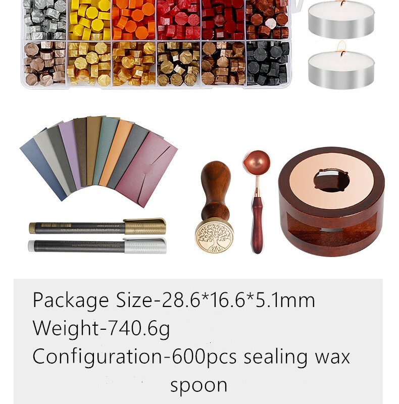 Mobarn Symbolic Wax Seal Set – Features exquisite Tree of Life, Rose and Bee design with 24 color wax beads. Custom rectangular shape. MOQ 500 sets. Ideal for meaningful wedding invitations. 19×13×5cm secure packaging. 7-day delivery.