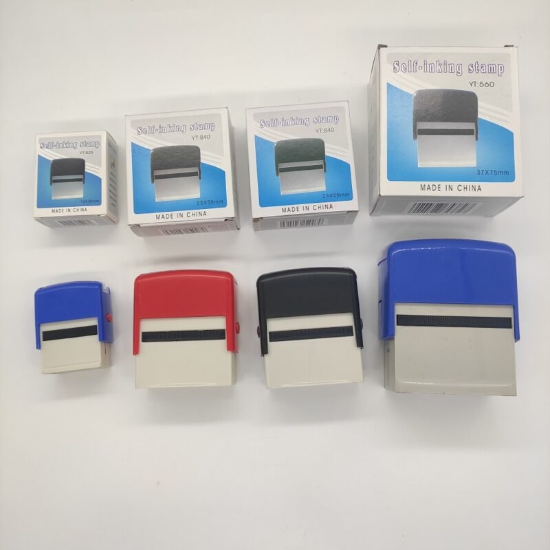 Mobarnstamp YT series self-inking stamps feature a practical 38×14mm size with replaceable ink pads (red/blue/black). Ideal for office documents, school forms, and business records. Custom logo/text available with 100pcs MOQ. Samples provided via DHL/UPS/FedEx/EMS.