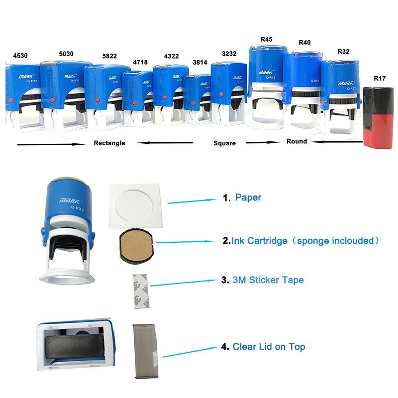 The Mobarnstamp KJQ4718 professional self-inking stamp features premium rubber seal with automatic ink system. Custom logo/text available with 50pcs MOQ. Ships worldwide in 7-15 days via express carriers. Ideal for office documents and business correspondence.