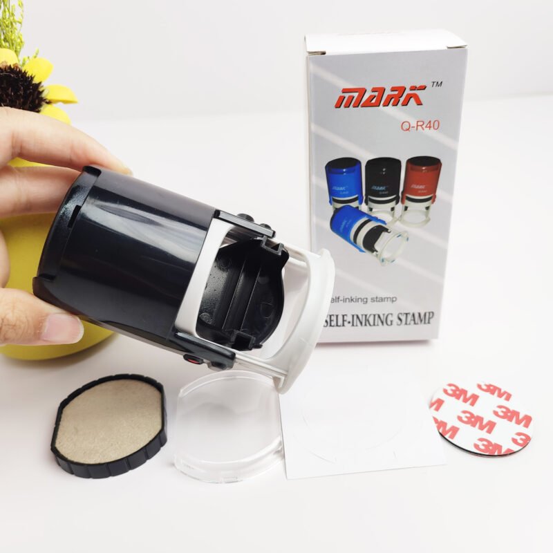 Mobarnstamp OEM Custom Transparent Self-Inking Rubber Stamp – 32mm Round Automatic Stamp Manufacturer (MOQ 100 Pcs)